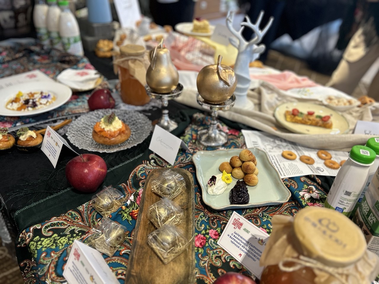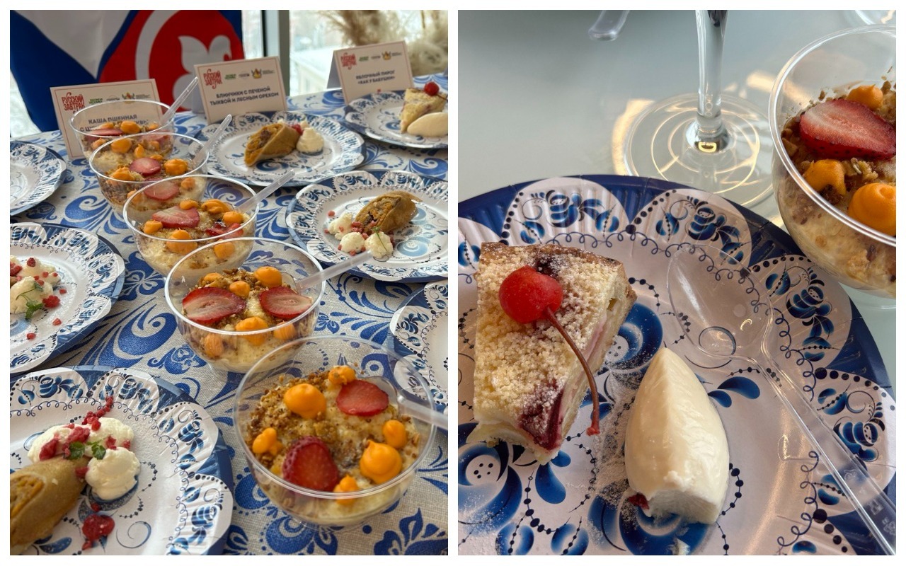 На самой презентации про устойчивый спрос размышляли с ложкой в руке: гостям предложили дегустационный сет из блюд всех участников. На столах, накрытых скатертями в стиле гжель, выстроились тарелки с мини‑порциями каш, запеканок, блинчиков и пирогов, а рядом – прозрачные креманки с десертами на основе йогуртов и творога «ЭкоНивы», украшенные ягодами и орехами. Такой формат позволил за один визит попробовать практически все концепции «Русского завтрака» – от классических сырников до более экспериментальных сочетаний.
