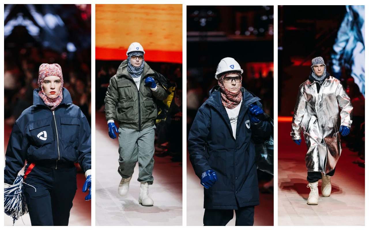 В коллекцию вошли пять образов, объединяющих промышленную эстетику и современные формы. На подиум вышли реальные сотрудники Череповецкого металлургического комбината — машинисты, сталевары и слесари.