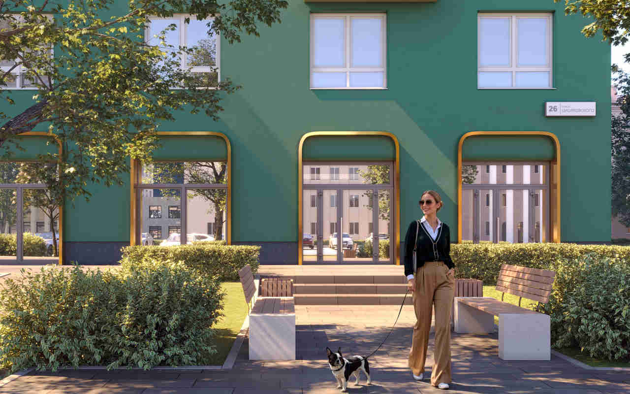 Для комфорта жителей в «Циолковском» предусмотрена безбарьерная среда с входными группами на уровне земли, единый сквозной вестибюль, который связывает внутренний двор и сквер, а также подземный паркинг, кладовые и колясочная. На первом этаже разместятся магазины и бытовые сервисы.